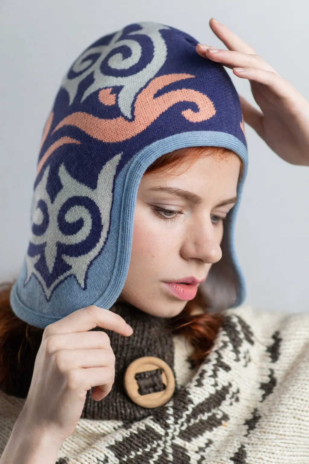Эта шапка — настоящая история, рассказанная сквозь узор, символ силы и уважения к корням. Она подходит для тех, кто хочет подчеркнуть свой характер и показать свой личный культурный код миру.