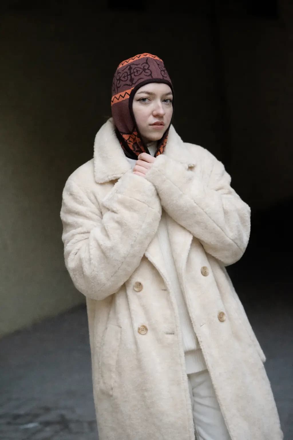 Мегри - дизайнерская шапка с ушами и вытянутым силуэтом, в которой этнический код переведён в современный городской образ. Глубокая посадка, узкие поля и открытая шея создают собранную форму, которая подчёркивает вертикаль и делает модель выразительным акцентом для слоистых этно-урбан комплектов.